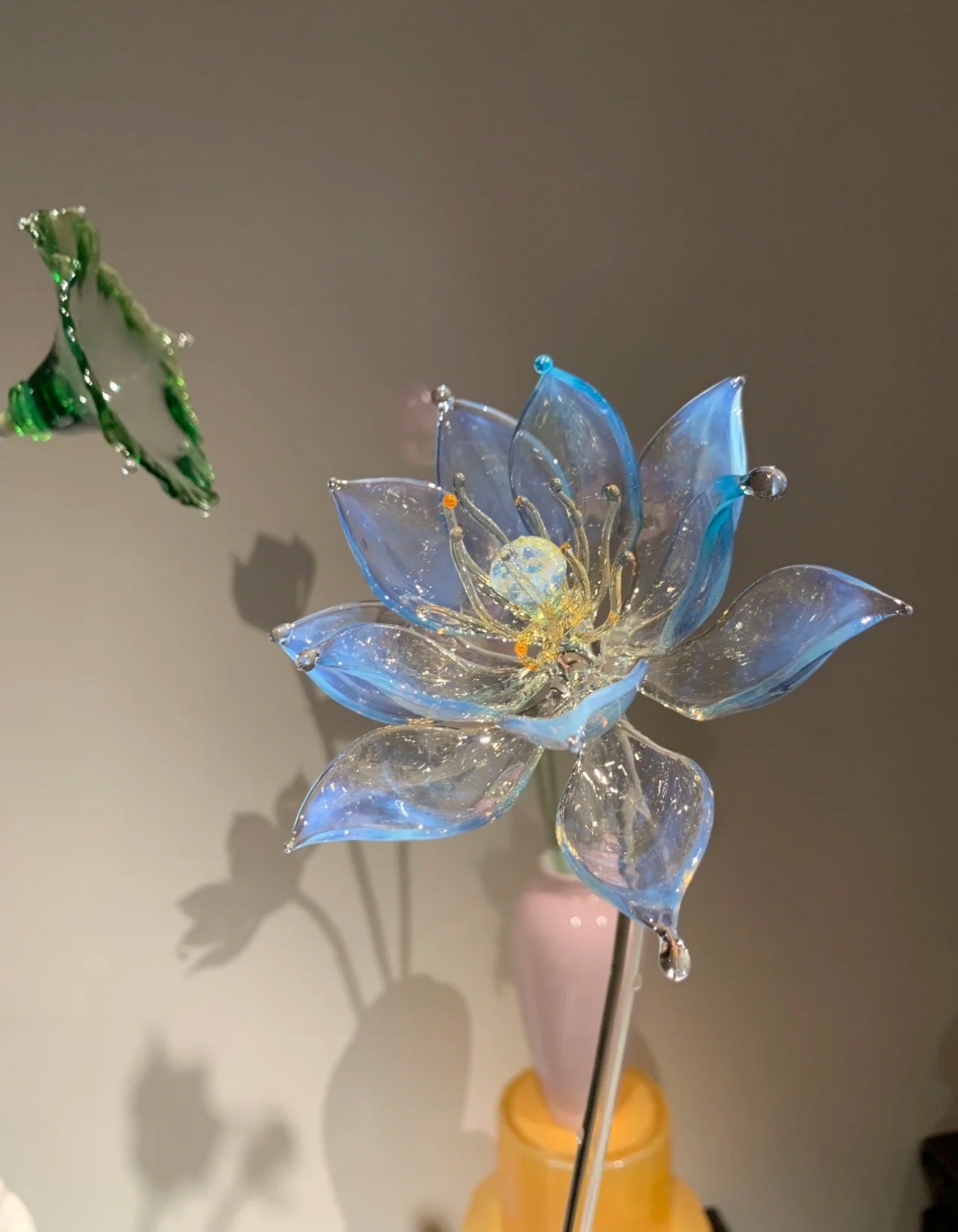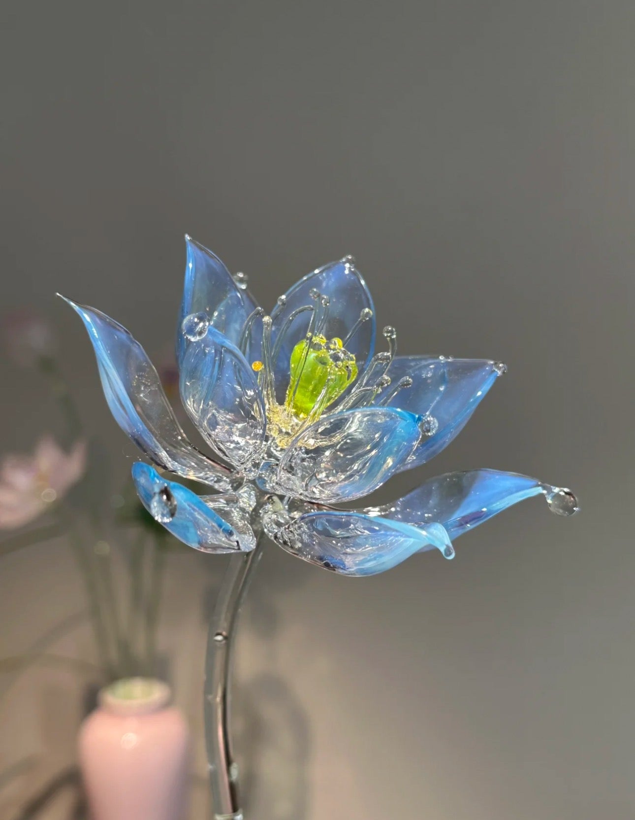 Handcrafted Blue Lotus Glass Sculpture - Artistic Home Accent ✨ Unique Decor for Your Living Room